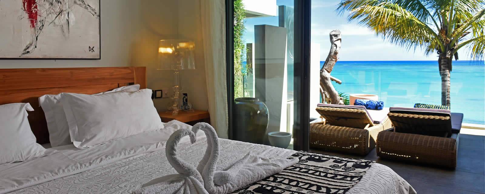 Appartement design situé dans le nord à Pereybère (Grand Baie) les pieds dans l’eau avec piscine.