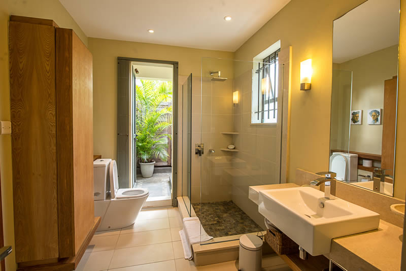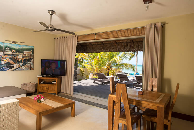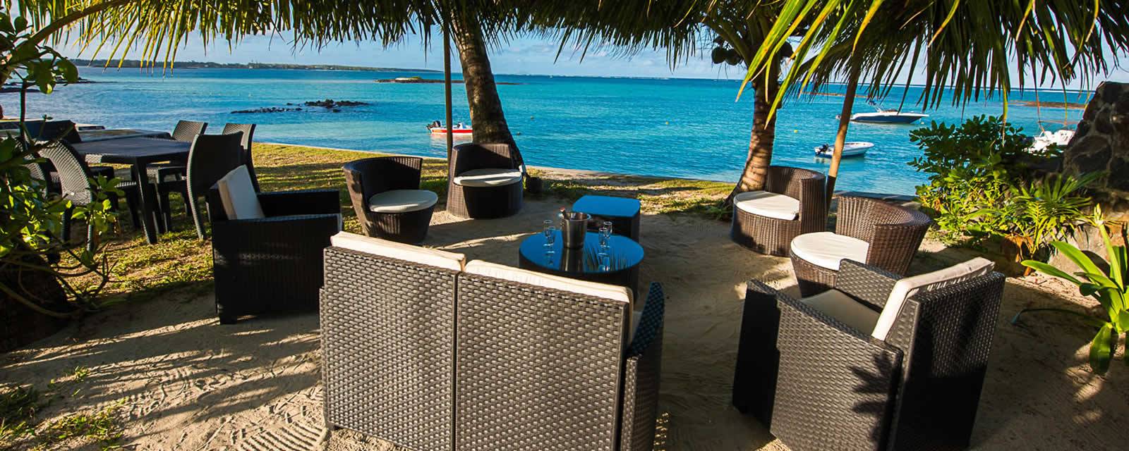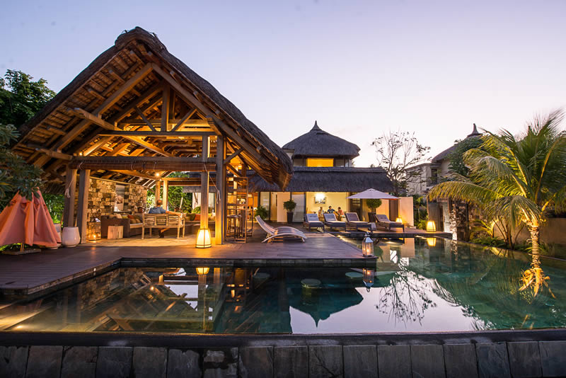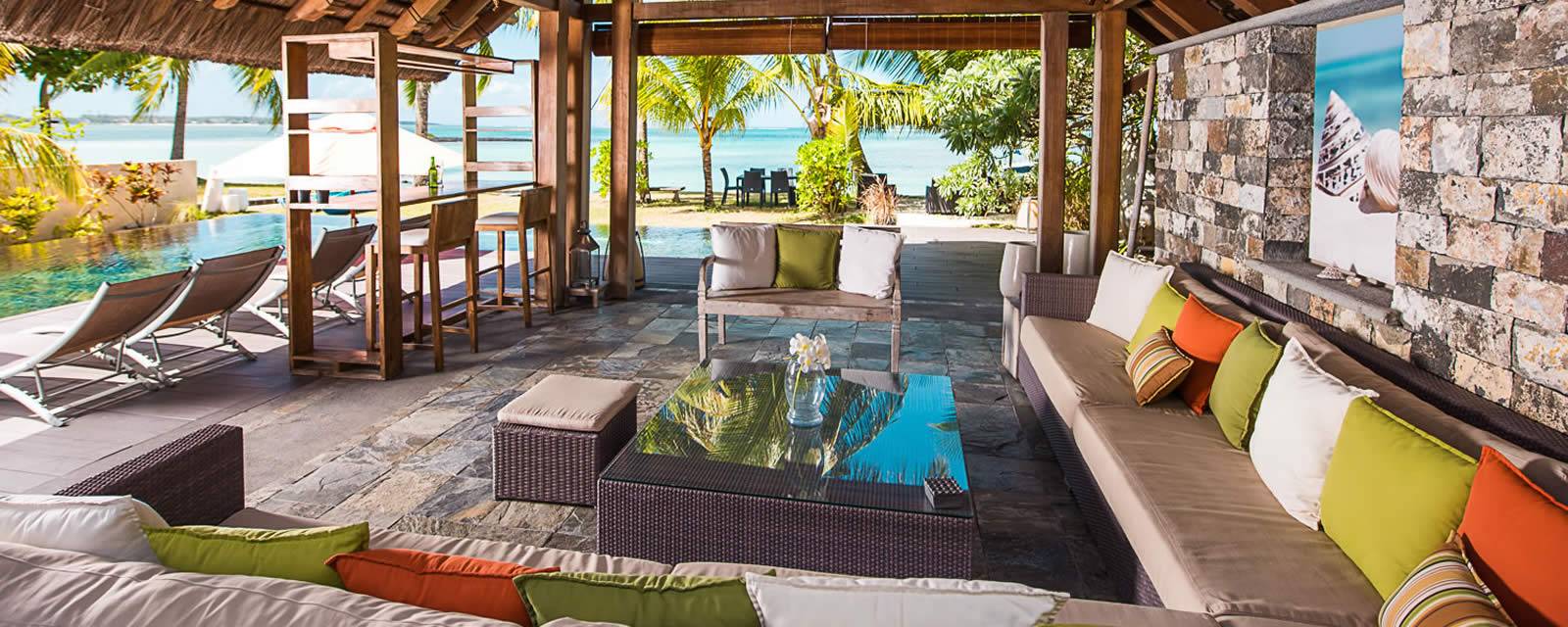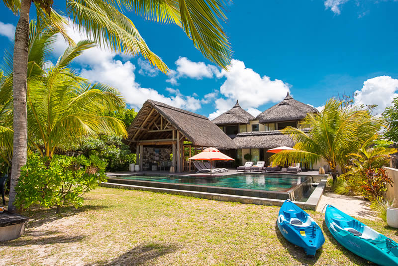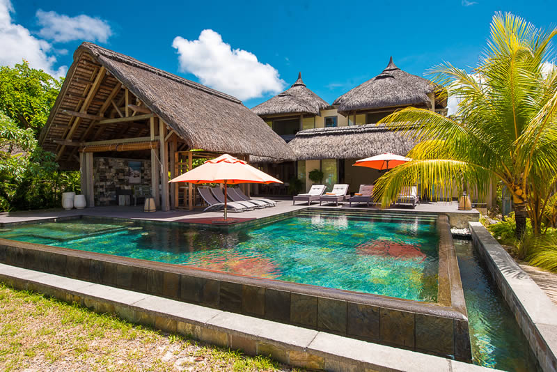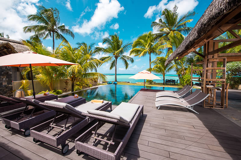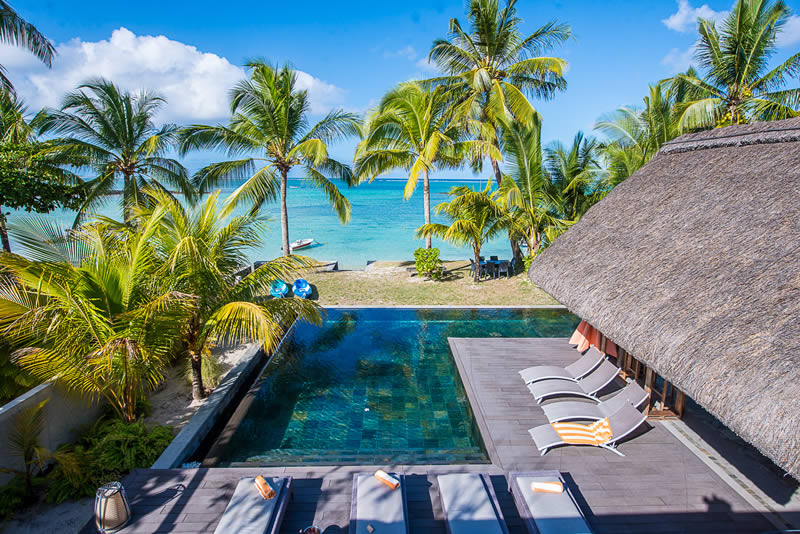 Palm Bay est située entre le célèbre hôtel One & Only Le Saint Géran (l’hôtel des stars) et l’hôtel Belle Mare Plage. La villa est nichée dans une baie de cocotiers avec en face une longue plage de sable blanc. Le site est chic et calme, idéal pour nager, faire de la plongée et jouer au golf (Belle Mare hotel) . Notre coup de cœur: La grande piscine en ardoise et le petit coin salon sous les cocotiers face a la mer.