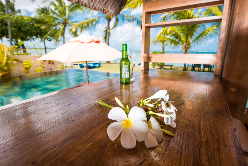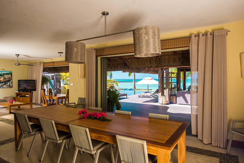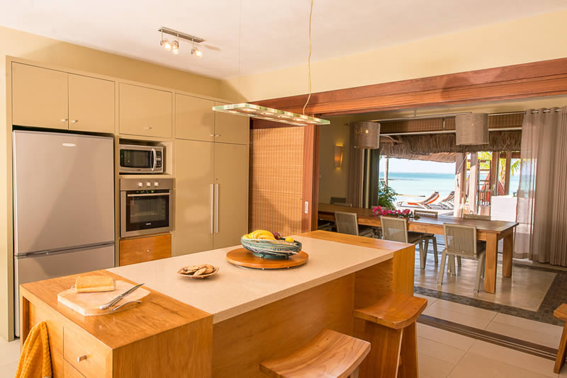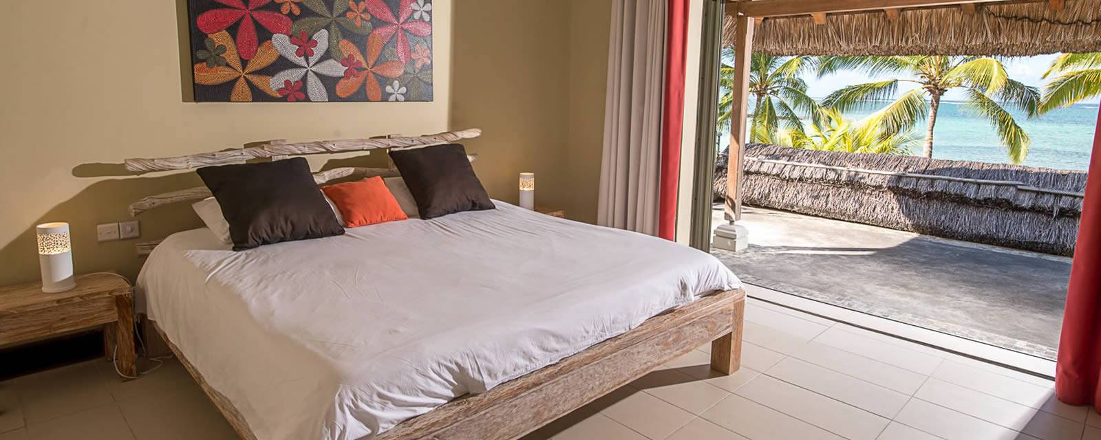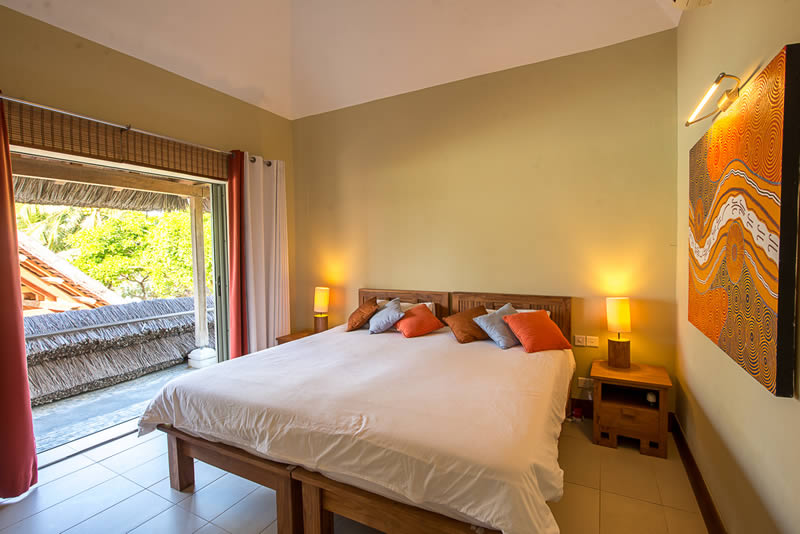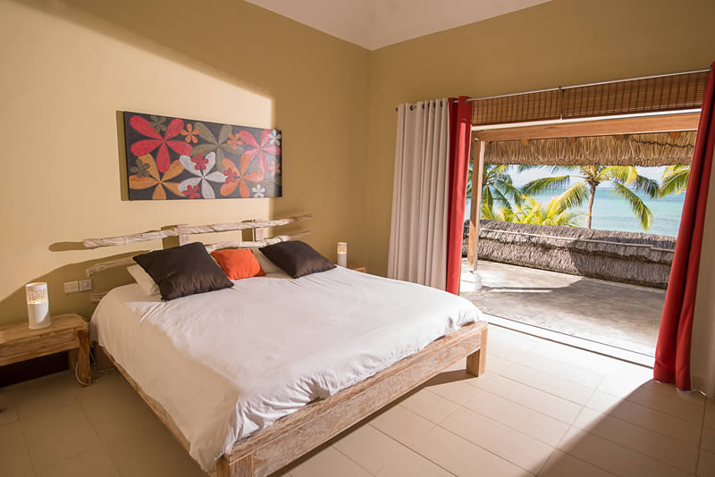 Comme à bord d’un bateau …tellement que la vue de la chambre principale sur le lagon turquoise est magnifique.