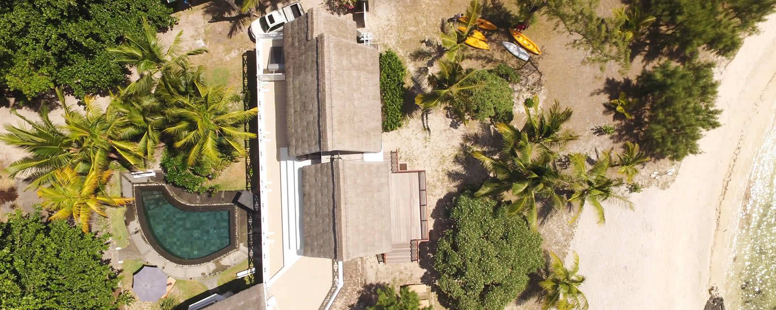 Villa de 6 chambres et 6 salles de bain avec une plage privée située sur la pointe d’une grande baie ou se trouvent les 2 plus beaux hôtels de l’Ile Maurice, Le One & Only Le Saint Géran et le Prince Maurice.